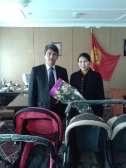 Бакай-Ата райадминистрациясы январь айында төрөлгөн 3 эмдин ата-энесине коляска тапшырды